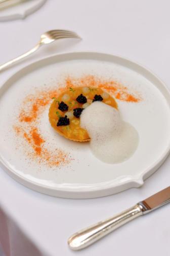 - Ceviche de flétan à l'argousier (Stikliai) : Une association fraîche et audacieuse entre la mer et la forêt, où la vivacité de l'argousier vient sublimer la délicatesse du poisson.