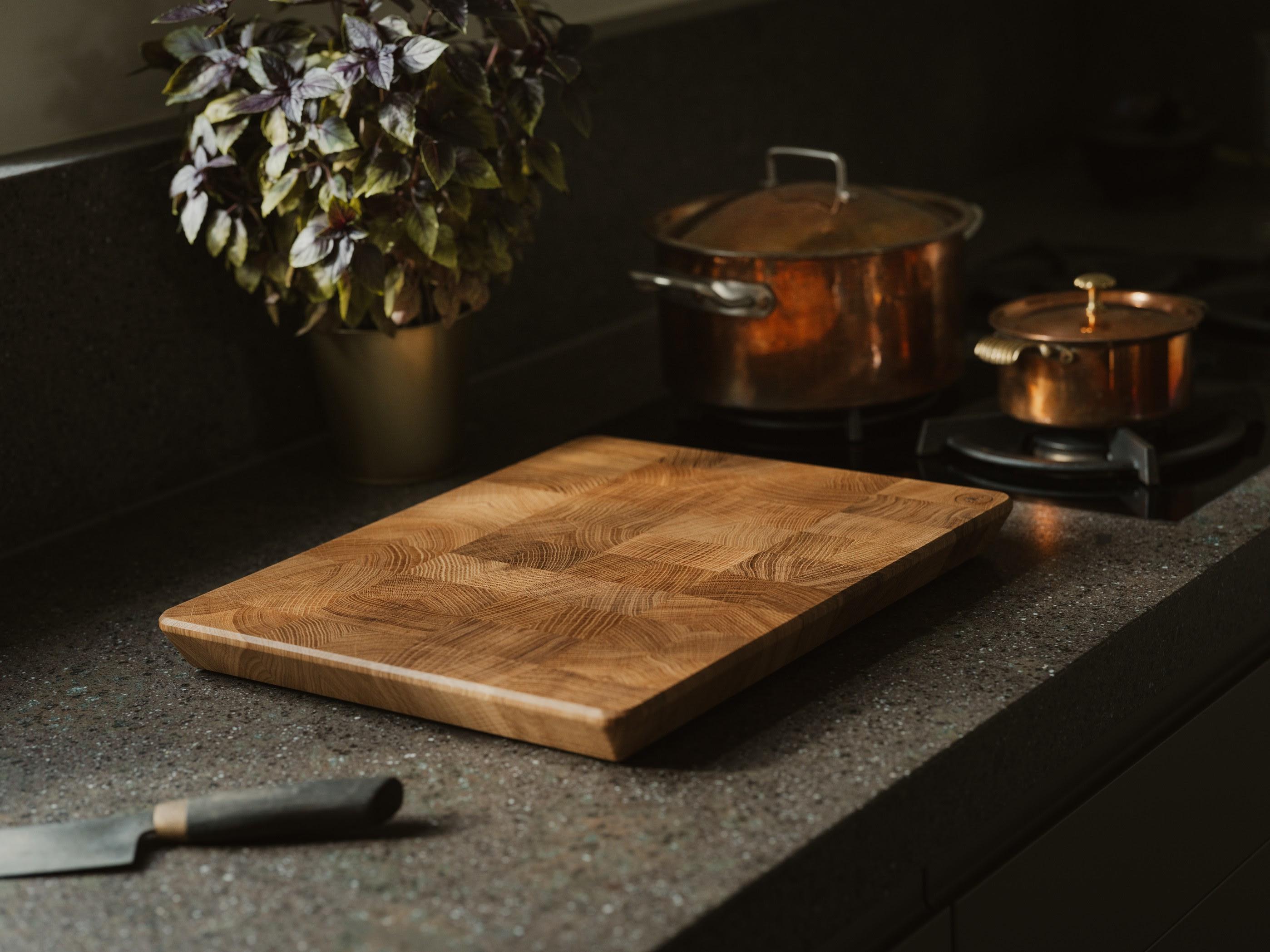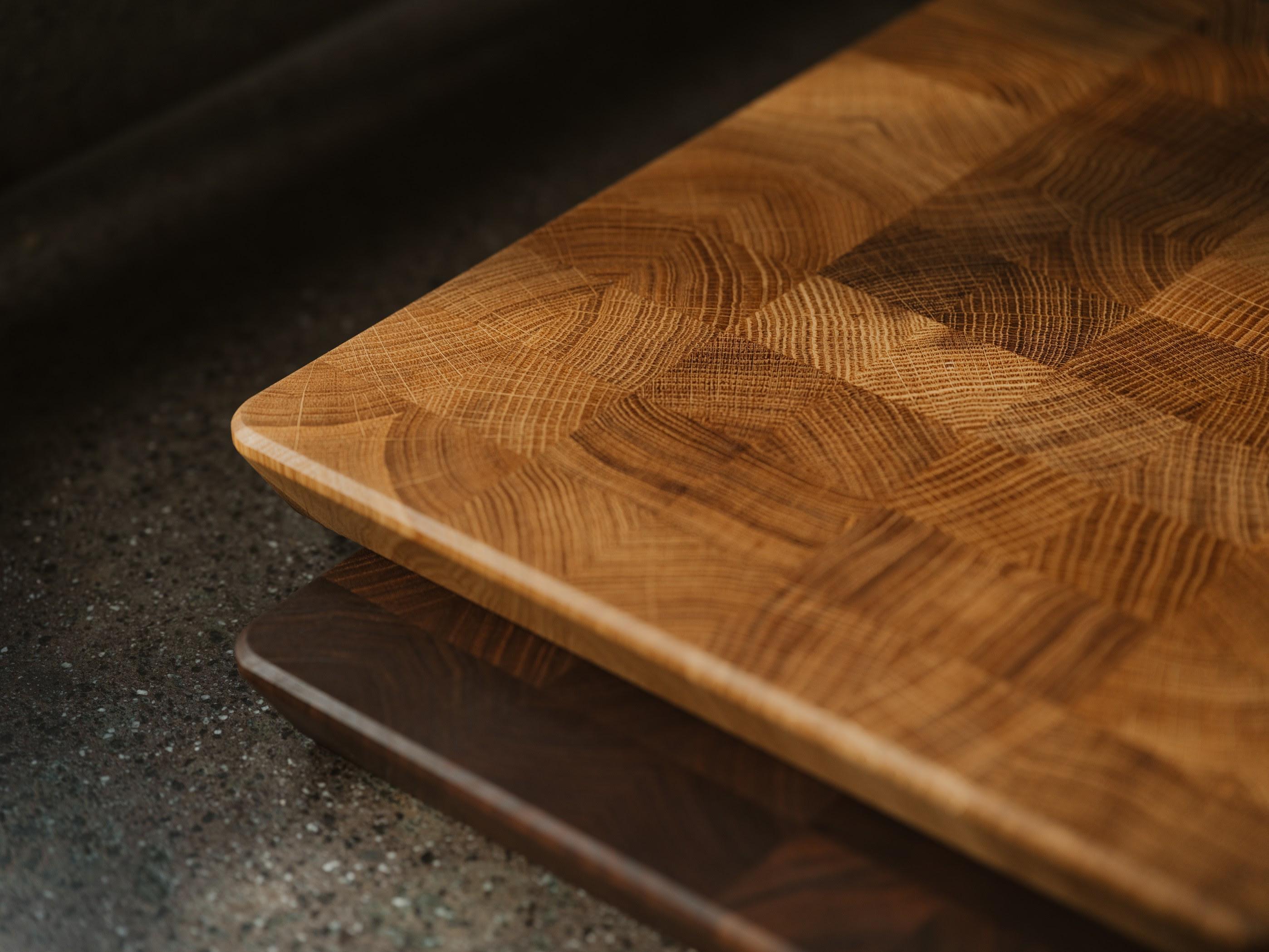 Cette planche de cuisine haut de gamme, conçue selon la technique exigeante du bois de bout, est majoritairement fabriquée à la main. Chaque pièce est méticuleusement assemblée à partir de blocs de bois soigneusement triés, mettant à l’honneur l’authenticité et l’excellence artisanale.